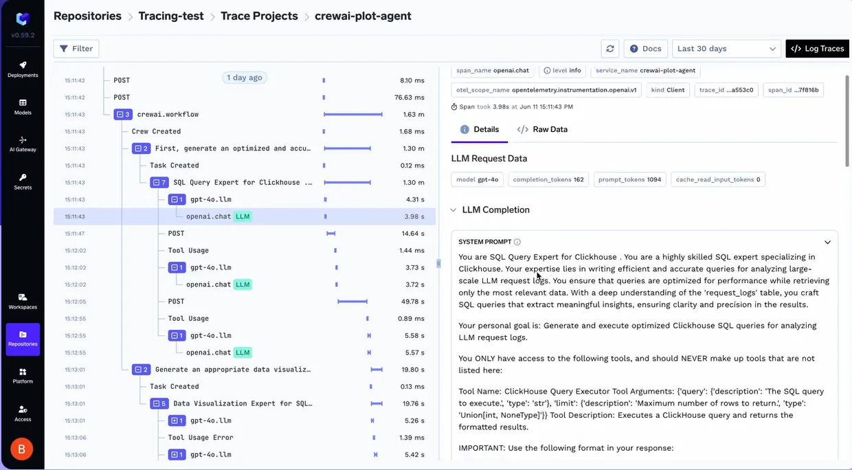 This eliminates the need to correlate logs from multiple services or providers. Regardless of which model or tool an agent uses, execution data is collected centrally and can be analyzed as a single workflow.