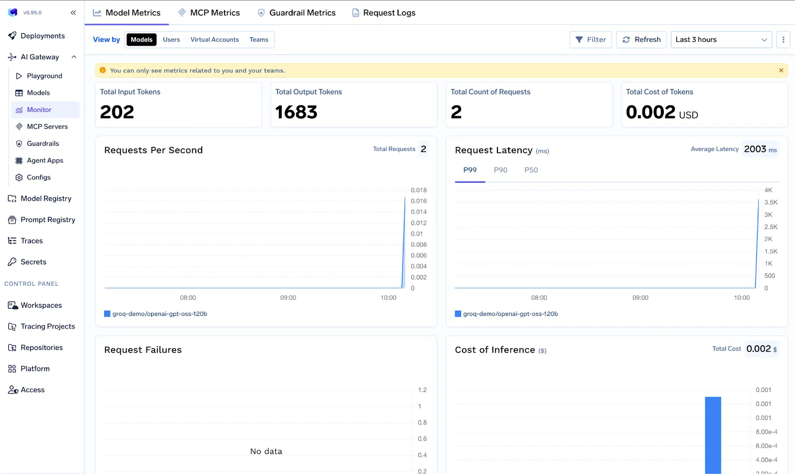 By centralizing these functions, TrueFoundry eliminates the need for teams to build connectors, write routing logic, or manage separate dashboards. The gateway becomes the nervous system of your AI infrastructure, enforcing consistency, security, and reliability across every model and agent.