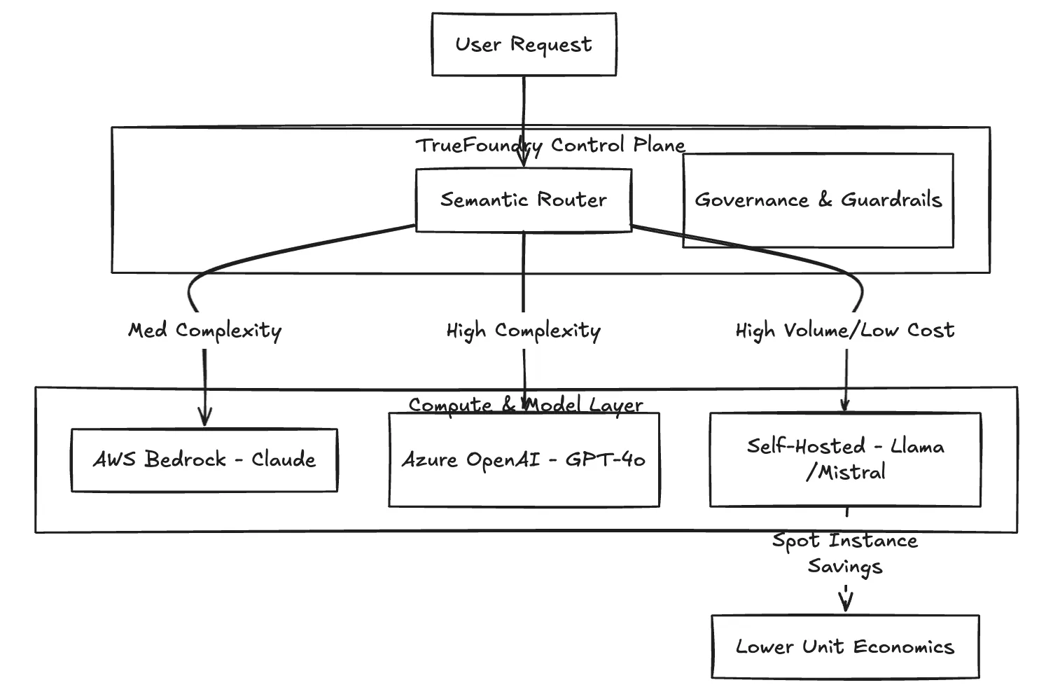 Fig 2: TrueFoundry’s routing logic optimizes unit economics by matching task complexity to the most cost-effective provider.