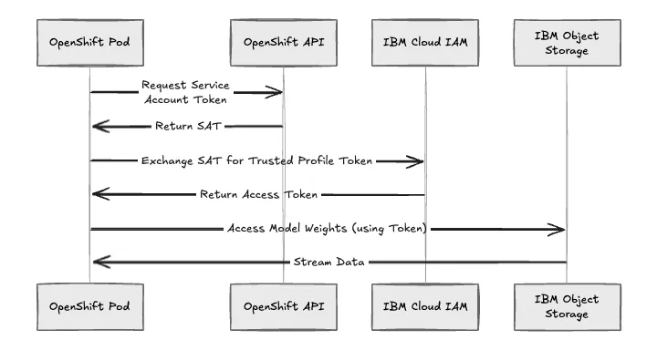 This allows your OpenShift workloads to assume a dynamic identity. The pod exchanges its localized Service Account Token for an IBM Cloud IAM token, granting temporary access to IBM Cloud Object Storage (COS) or IBM Key Protect.