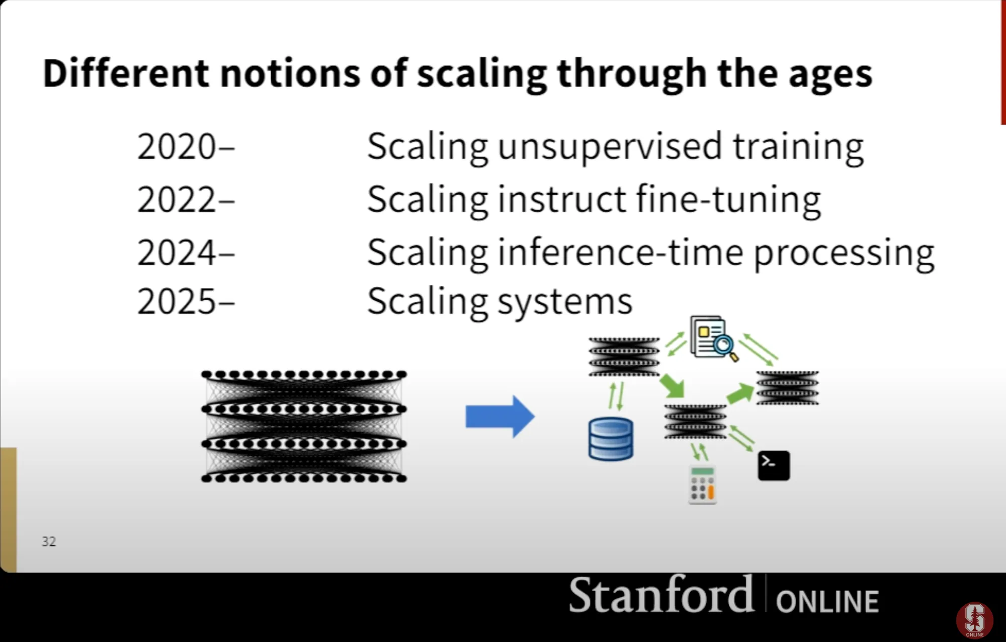 A recent video from Stanford outlined the evolution of scaling in AI across different eras, focusing on how the emphasis has shifted from model-centric development to system-level integration