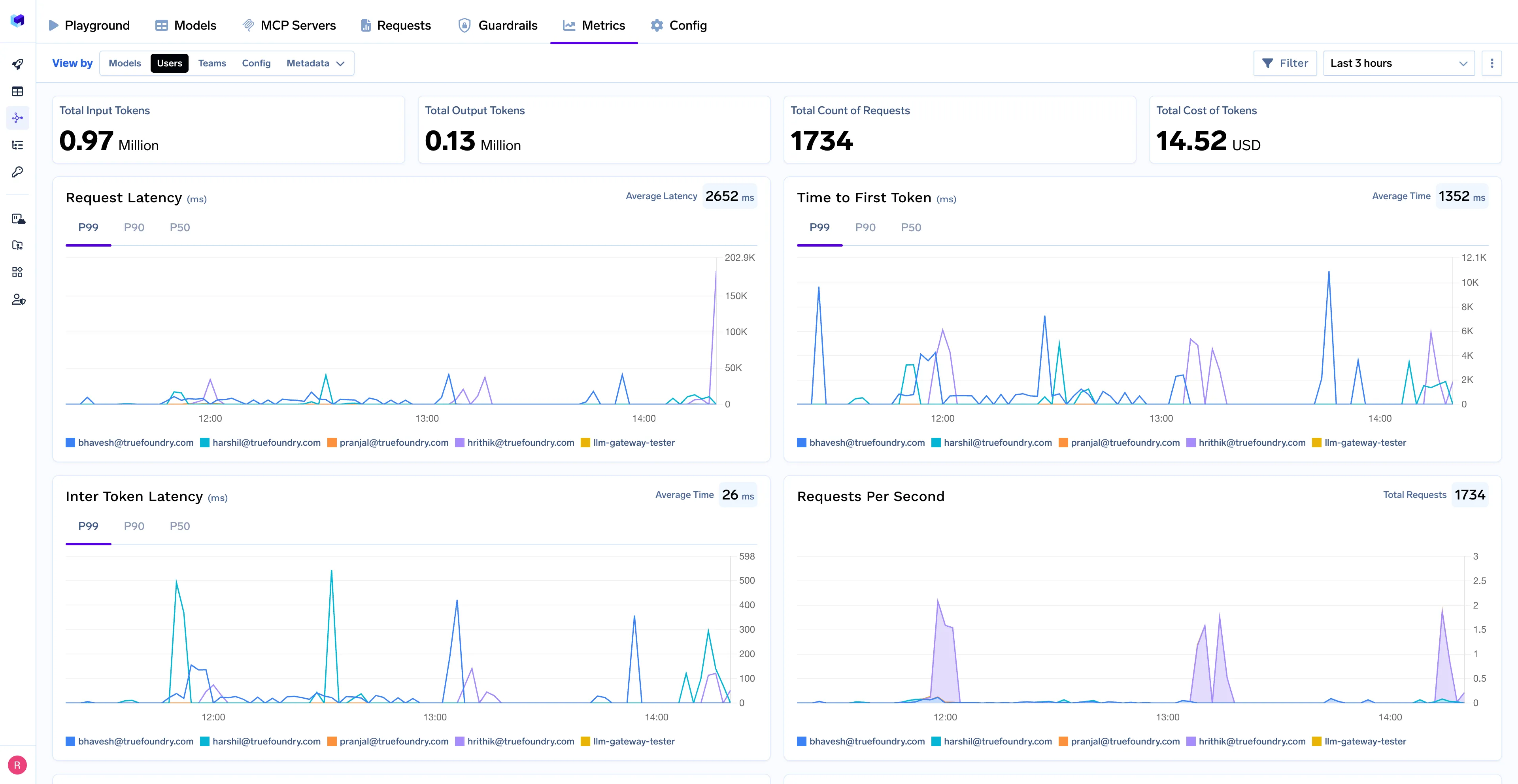 - Token Consumption Metrics: Real-time monitoring of input and output token usage.